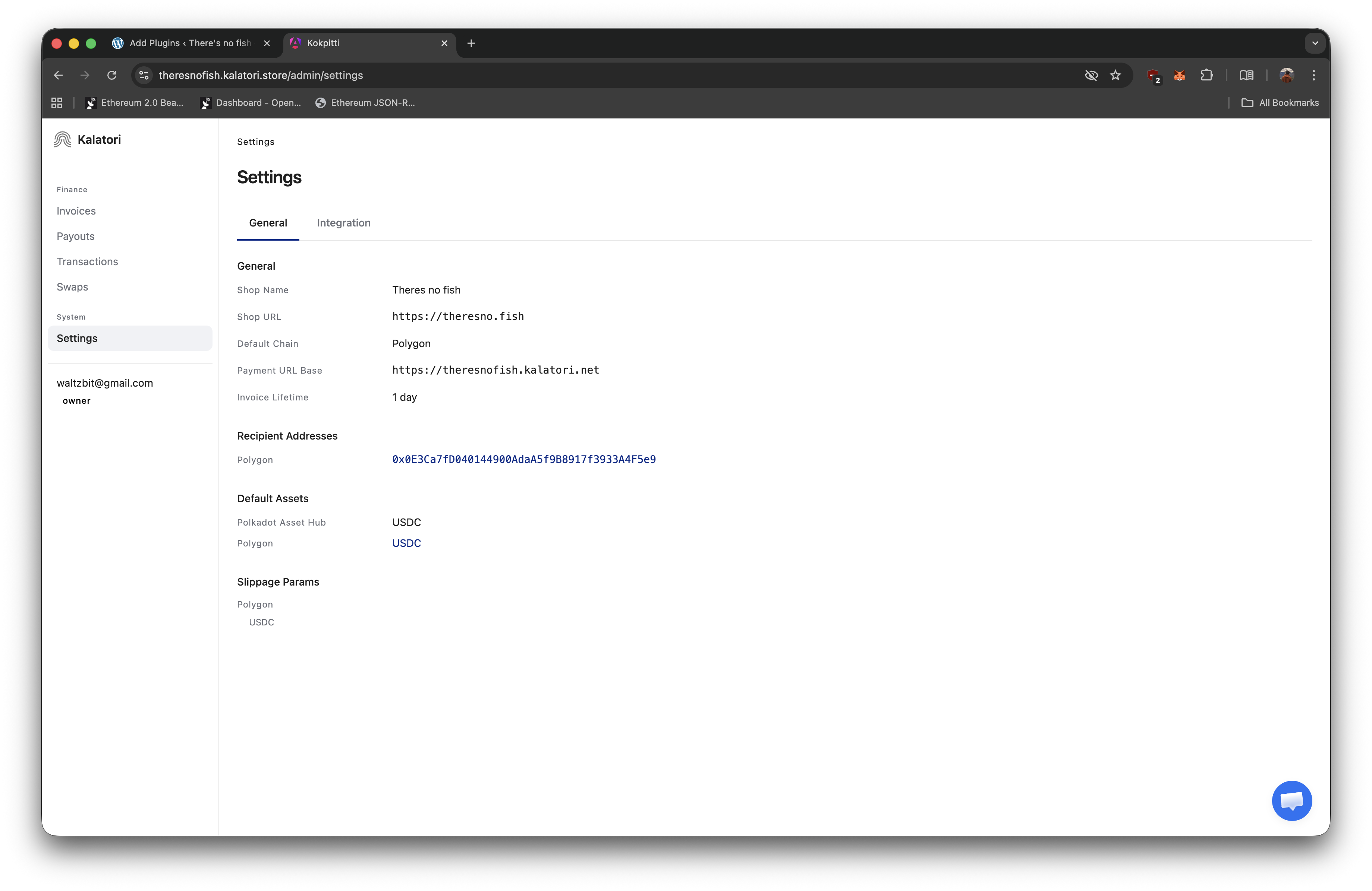 A ready-made WordPress plugin that adds Kalatori as a payment method in your WooCommerce store. Handles invoice creation, payment redirects, webhook processing, and order status sync out of the box.